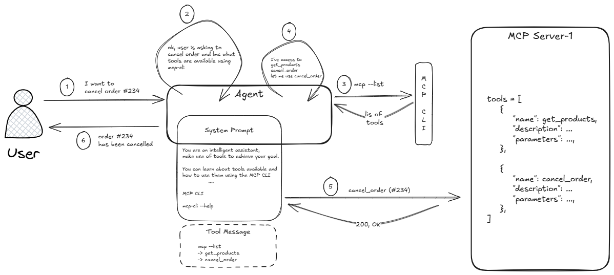 Notice that the MCP server isn’t changed at all—we’re just introducing a new way to interact with it. In that sense, MCP CLI is best described as an alternative MCP client implementation.