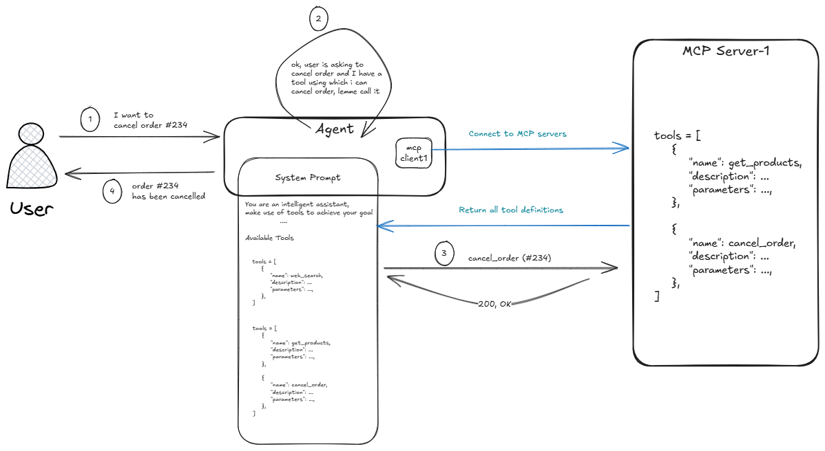 This gets added as tool output and becomes part of the context sent to the LLM. Now, if the user asks again to fetch products, the LLM can notice that get_products is already present in the message history and may choose not to call mcp-cli again—depending on your context engineering strategy and how long you keep tool outputs in context.